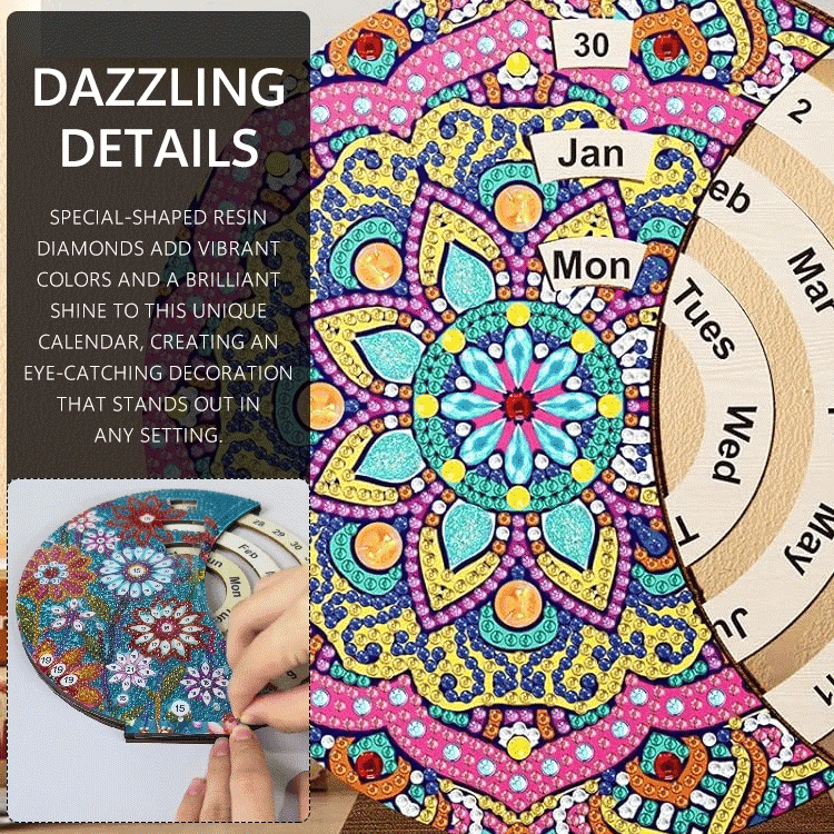 Each calendar is adorned with special-shaped resin diamonds, offering a brilliant sparkle and rich colors that catch the light beautifully. The finished piece is truly one-of-a-kind and brings life to any room.